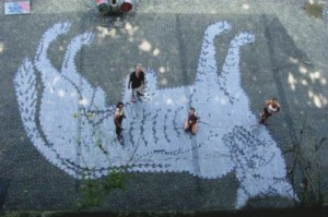 On 21 June 2005, the inaugural event of TEVERETERNO was launched by founder and artistic director Kristin Jones. She unveiled a majestic frieze of 12 iconic Roman she-wolves, emerging from the patina of the Tiber River embankment walls. At sunset on opening night, 2,758 candles were lit along the embankments to commemorate the number of years since the legendary founding of Rome.  More than 4000 people attended the opening.
