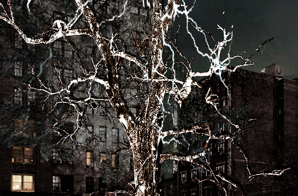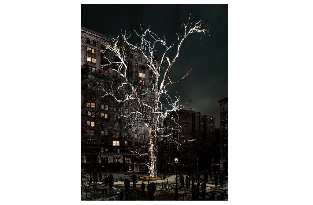 A historic tree in NYC becomes an illuminated installation exhibition, commissioned for NLE Lab Gallery exhibition “Gathering Place” to evidence 8th Street Greenwich Village’s unique history, and to engage the community in critical dialogue around its future.