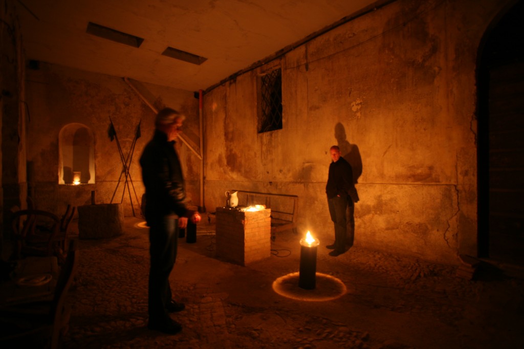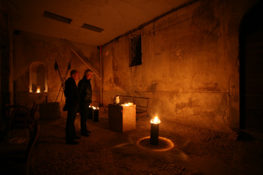 Media: Glass vessels, black plinths, water, fire, shadow, light, musical transmissions