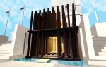 The black posts extend down through the Tomb, surrounding the warrior and protecting him or her within the glade of trees. Light enters the Tomb through a tempered glass paver set within the reflecting pool above, reminiscent of light filtering through the tops of trees. The glass paver is engraved with the words “A New Zealand Warrior – He Toa No Aotearoa”, such that the silhouette of these words falls as soft shadows upon the walls and floor of the Tomb. The same poignant words are engraved upon the warrior’s tombstone on the floor below. These engraved words remain unmoving, whilst the transparent silhouette of words from above moves softly across the floor for all time.